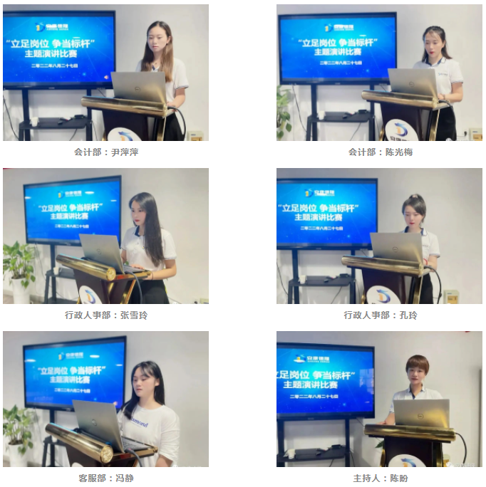 經(jīng)過參選人員的角逐競爭及評委打分,最終11名選手完成比賽,來自會計部陳光梅、人力資源部孔玲、銷售一部陳敬如、分別獲得“立足崗位 爭當(dāng)標(biāo)桿”主題演講比賽冠亞季軍排名及獎勵。