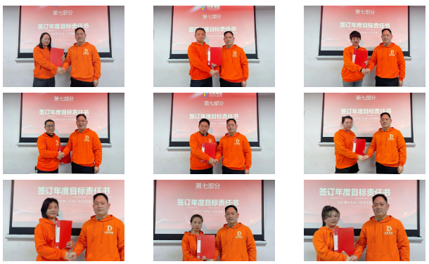 會上,總經(jīng)理與各部門負(fù)責(zé)人簽署了2025年度目標(biāo)責(zé)任書,各部門主管目光如炬,手中的筆仿若承載著團(tuán)隊(duì)的夢想與未來,每一筆落下,都似在奏響奮進(jìn)的戰(zhàn)鼓;隨后全體員工以篤行無畏的氣勢簽下2025年軍令狀,軍令狀的簽署,不僅是對完成各項(xiàng)目標(biāo)的堅(jiān)定承諾,也是自我激勵(lì)、追求卓越的“奮進(jìn)宣言”,象征著一份責(zé)任、一種擔(dān)當(dāng)、一次集結(jié)。